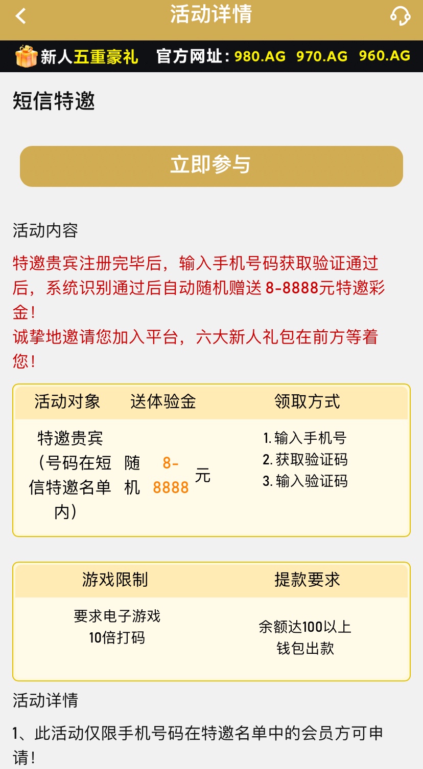 感兴趣的兄弟可以去碰瓷看看自己是不是特邀,仅限电子,10倍流水,满100取款